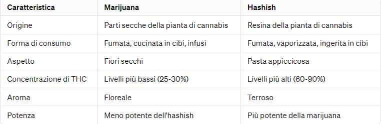 Qual è la differenza tra marijuana e hashish?